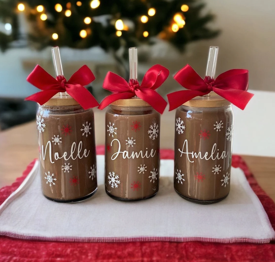 Can Glass Tumbler Vaso Lata Navideña Personaliza con un nombre! Navidad